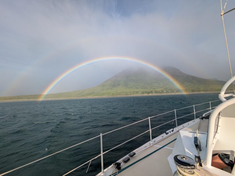 Tras un verano maravilloso en las Aleutianas y alrededor de Kodiak, navegamos bajo la lluvia con hermosos claros por la península de Kenai hasta Seward.